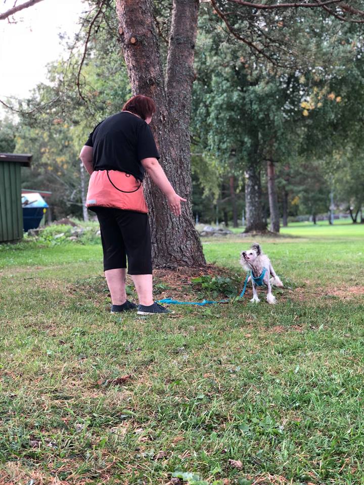 Vi har ikke trent heelwork på lenge, og han var skjev som fy i høyre og venstre, men har skjønt mye av å rygge bakover